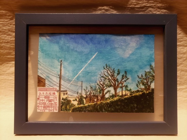 ART GROUP HASHIGOTAKA「髙」Minimum art No,869/ 2026 / No,043 ⚫ふと見上げたら / When I suddenly looked up.【 飛行機雲 / Contrail 】 ある晴れた日曜日の午後 東京から自転車で走り続け数十分 大きな橋を越え海へと続く川の果て、その手前の橋を越え陽が傾き始めた工業地帯へ…… ペダルを踏みつづけ走り続け 呼吸を調えようと一瞬足を止め空を見上げた その時、優しい水色の空に真っ直ぐに伸びてゆく飛行機雲 優しい空色に描かれる真っ直ぐな雲の線 何だかふわぁっと心が落ち着いた瞬間…… 優しい風が心を包んでくれた瞬間…… そんなあたたかな気持ちになった一瞬を切り取り僕も小さな世界に風を込め描きました あなたの心も優しさで包んでくれますように…… one sunny Sunday afternoon I rode my bicycle for several minutes from Tokyo. At the end of the river that leads to the sea after crossing a large bridge, we cross the bridge in front of it and head into an industrial area where the sun is beginning to set... Keep stepping on the pedal and keep going I stopped for a moment to steady my breathing and looked up at the sky. At that moment, a contrail stretches straight into the gentle light blue sky. Straight lines of clouds drawn in a gentle sky blue The moment my heart calmed down somehow... The moment when a gentle breeze enveloped my heart... I captured a moment that made me feel warm and drew a small world full of wind. May your heart be filled with kindness... 世界に一枚の、原画です。 Size M size 使用 アクリル *こちらの作品は、額縁もセットになっております。 額縁のサイズは以下の通りです。 Size S (縦16cm / 横12cm) Size M (縦21cm / 横16cm)