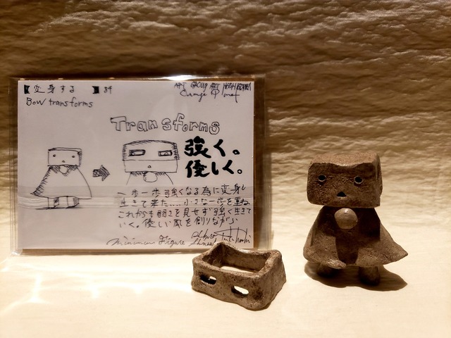 ART GROUP HASHIGOTAKA「髙」Minimum Pottery 【憧れるKURA】Pottery Figurines No,109 ⚫Minimum Pottery No,109【憧れるKURA Pottery figurines. 】 憧れる… 強い雲猫のポチに憧れるクラ 僕も強くなりたいとポチの格好をしてみる クラの猫パンチはまだまだ優しく弱々しいけど いつかポチみたいに強くなるそう決心し立つ 頑張れクラ! 強さと優しさとあたたかさを持ち生きるんだ…… I admire... Kura admires Pochi, a strong cloud cat. I also want to become stronger so I try to dress like Pochi. Kula's cat punch is still kind and weak though I stand determined that someday I will become strong like Pochi. Good luck Kula! Live with strength, kindness, and warmth...