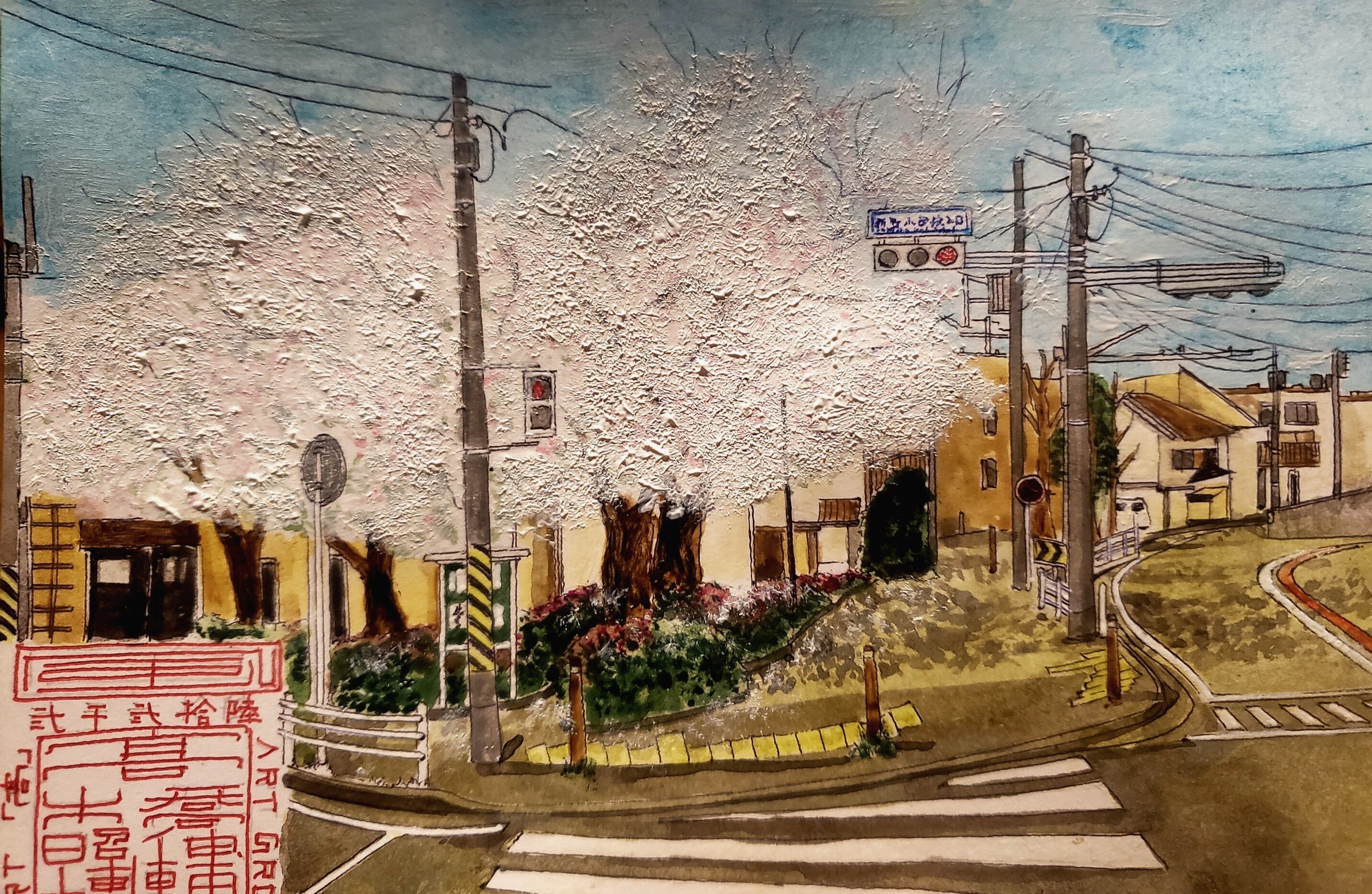 Cherry blossoms at the intersection that I continue to draw every year
