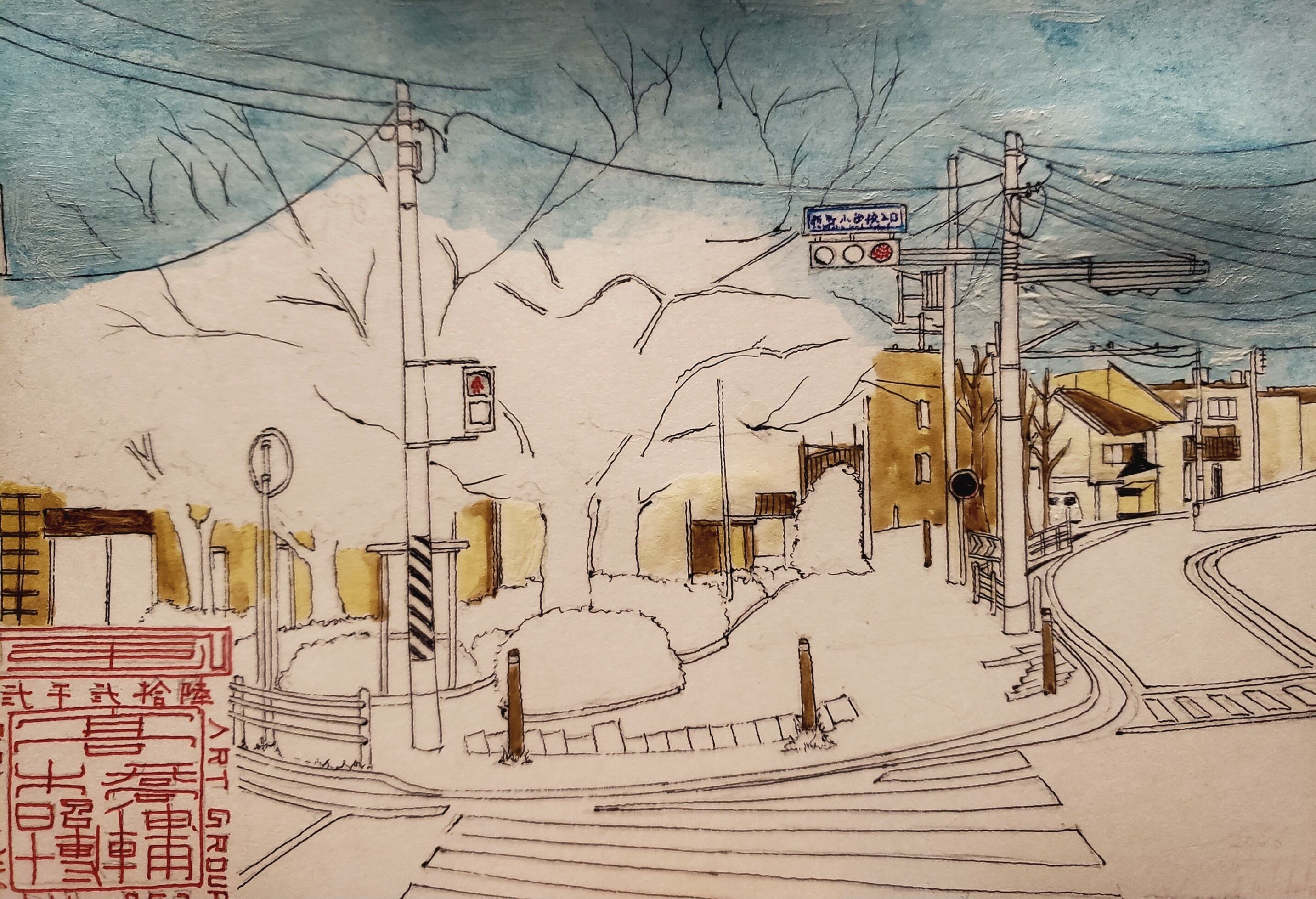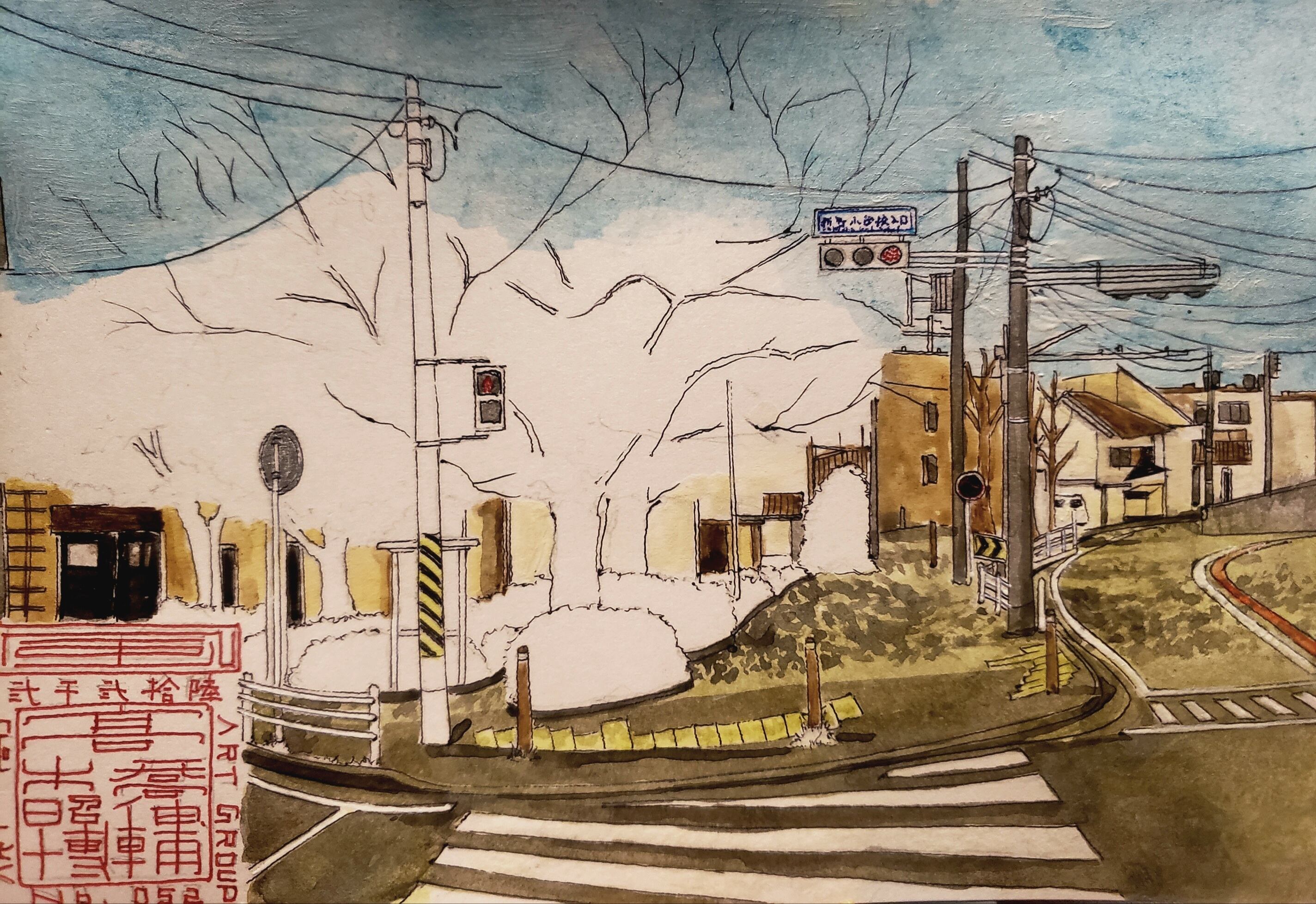 毎年描き続ける交差点の桜