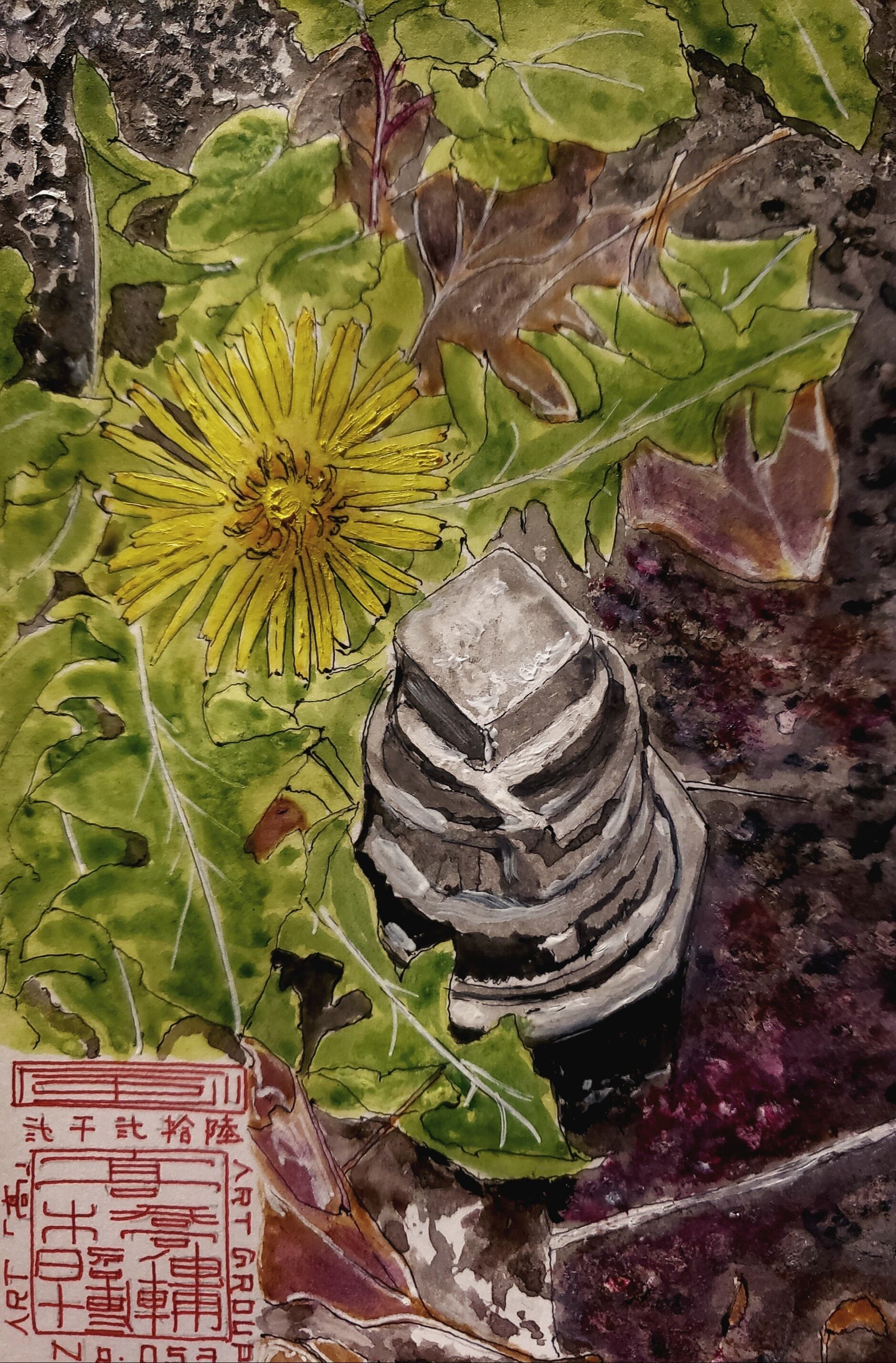 When I looked down at my feet, I saw a single, small Taiyō blooming with its umbrella fully spread out.