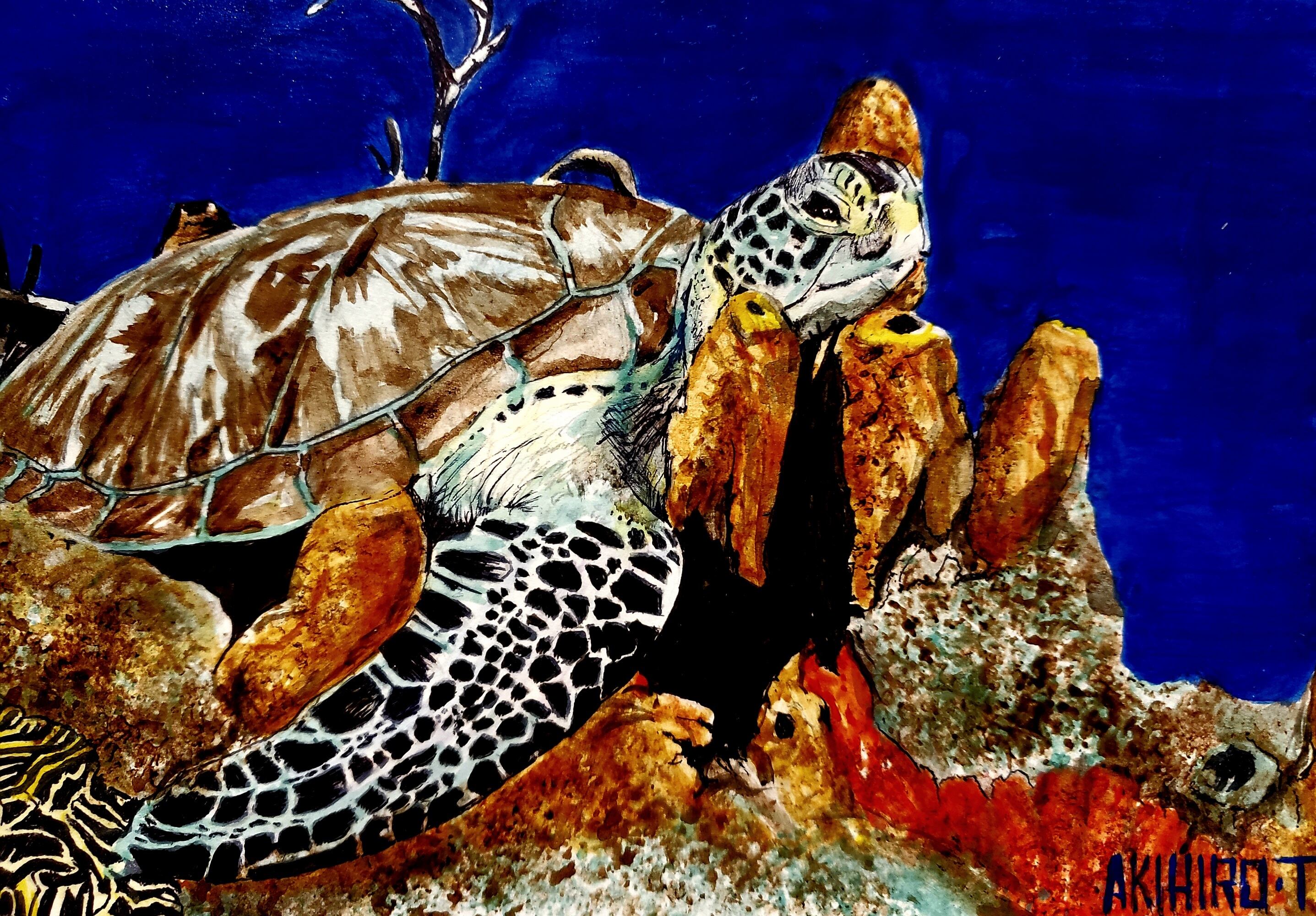 優しい瞳をしたウミガメ、海の中の神様の様.......