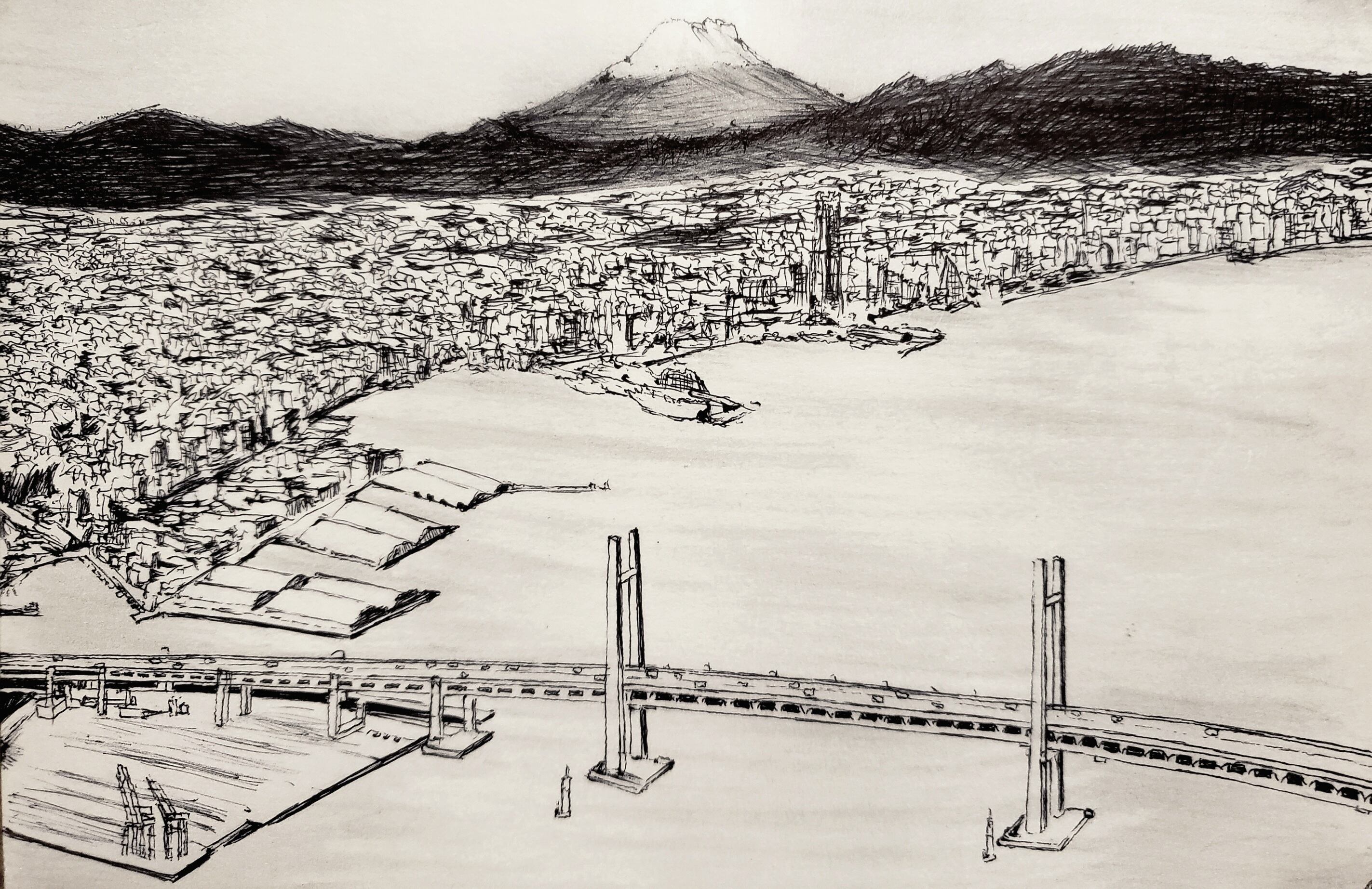 Fuji, which is my favorite port and my favorite city, always impresses me every time I see it.The port, the city, the greenery, and the big Mt. Fuji.A fascinating world, full of charm even in a black and white world.Fuji seen from over the Bay Bridge.