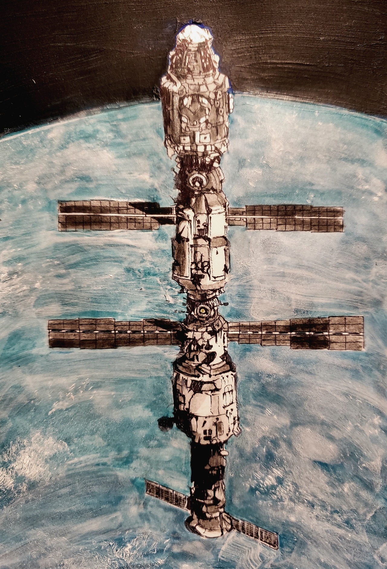 羽根をめいいっぱい広げ果てしない宇宙の中の、小さく美しい水に囲まれた青い星の周りをものすごい早さで飛ぶ宇宙の蜻蛉